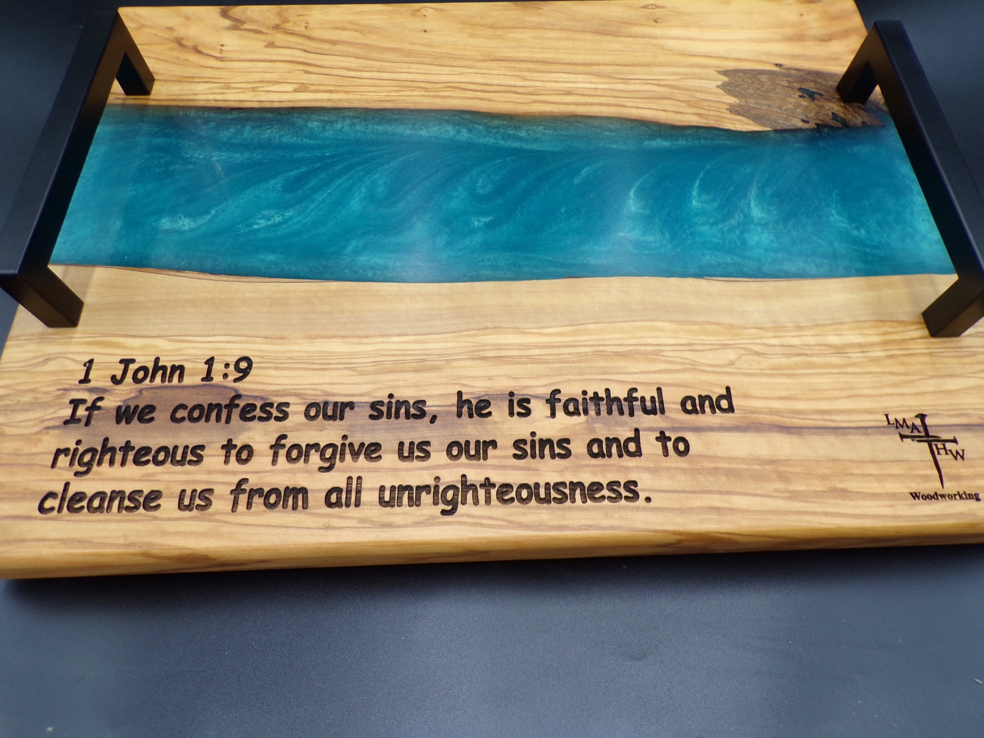 At LMA Woodworking, we believe in creating more than just kitchen tools; we craft moments of connection and reflection. Add your own flavor to a "Personalized Bible Verse made of Olive Wood River Charcuterie Board" is a testament to this commitment, combining natural beauty, functionality, and a touch of faith.