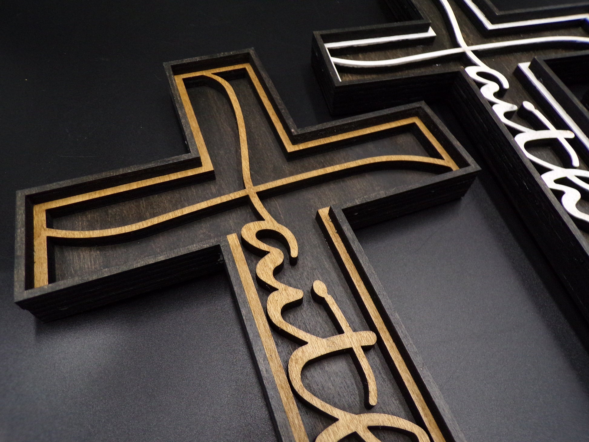 Crafted from 1/4" birch plywood, these crosses are laser-cut and expertly glued together. They come with a convenient saw hook hanger on the back for effortless hanging.