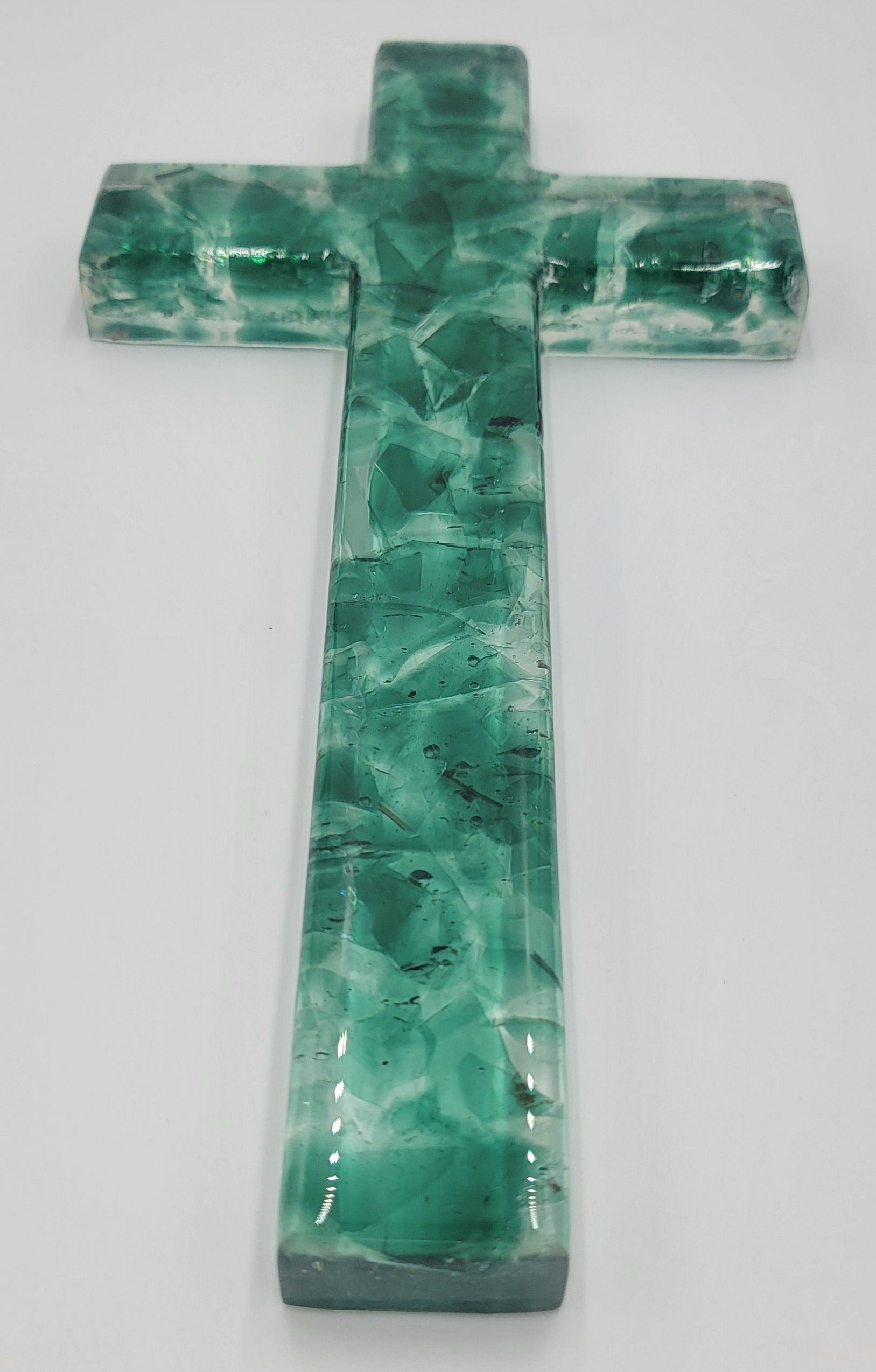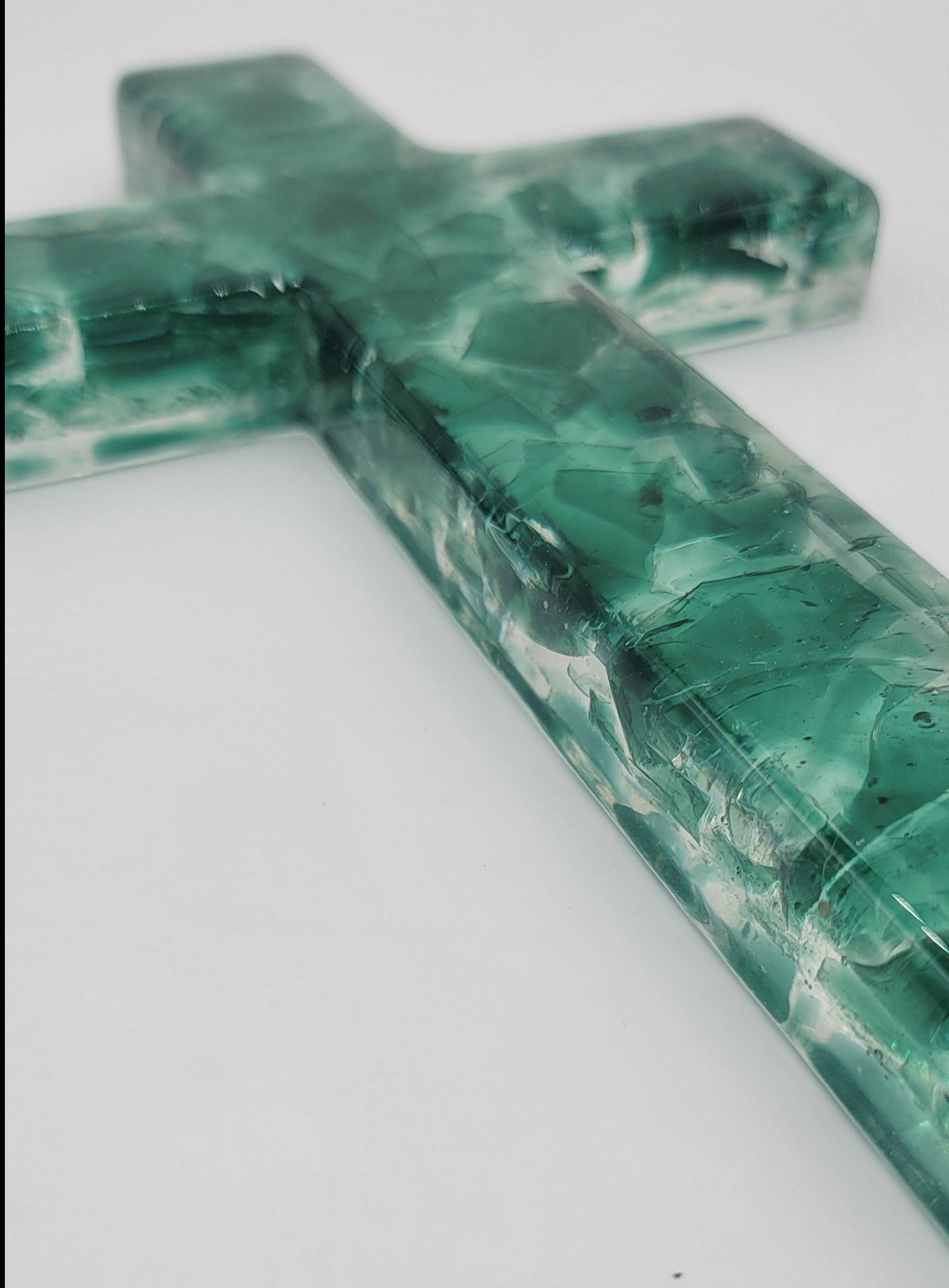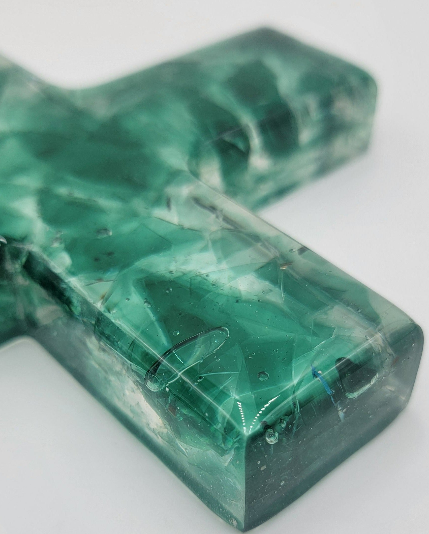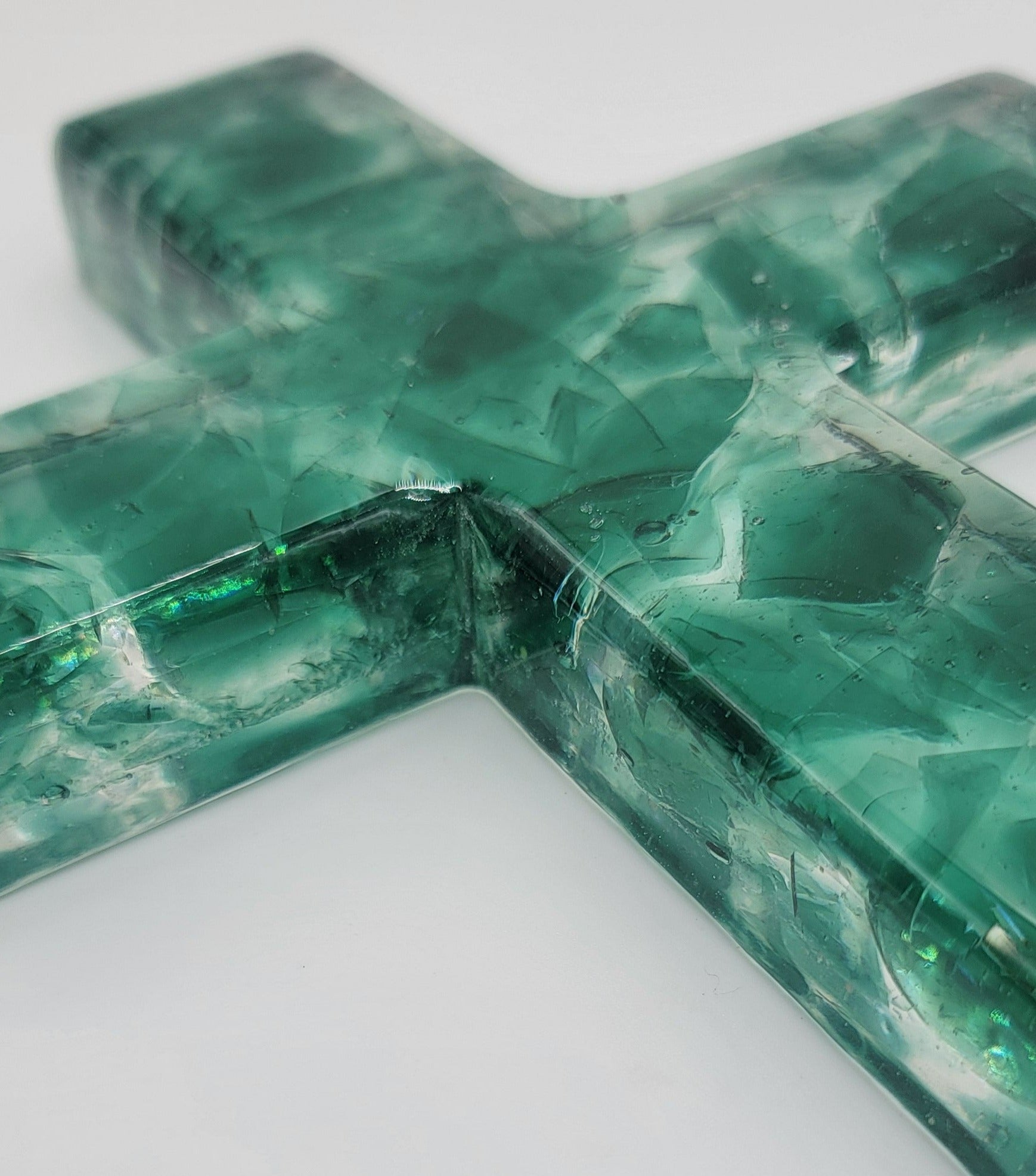 Embrace Healing with Our Custom Clear Epoxy Cross with Broken Colored Glass