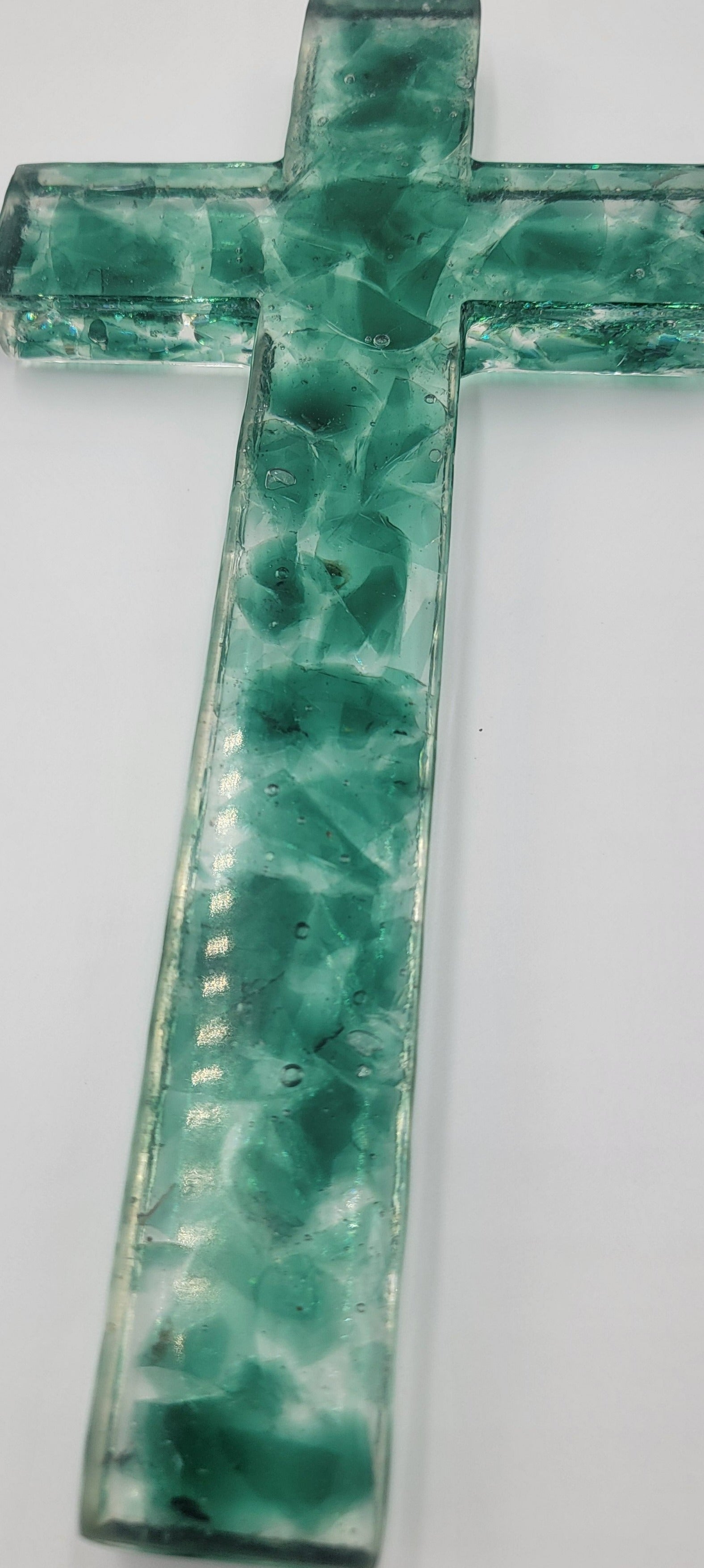 Custom Clear Epoxy Cross with Broken Colored Glass - A Symbol of Healing - Customizable Spiritual Art