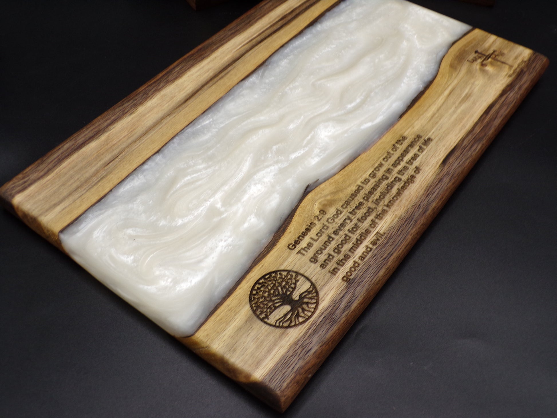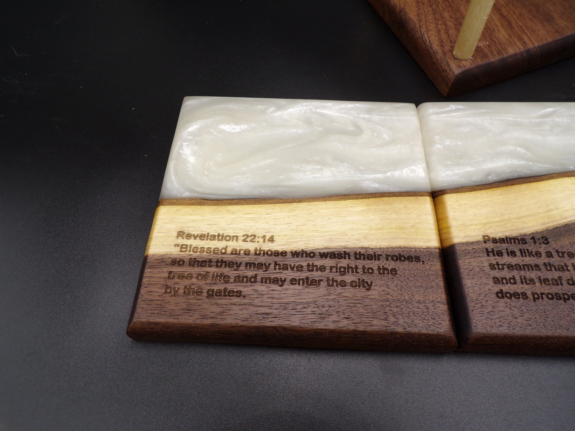 The river-like resin inlay not only adds a touch of elegance but also symbolizes the living water of faith and spirituality, making this set a meaningful and eye-catching centerpiece.