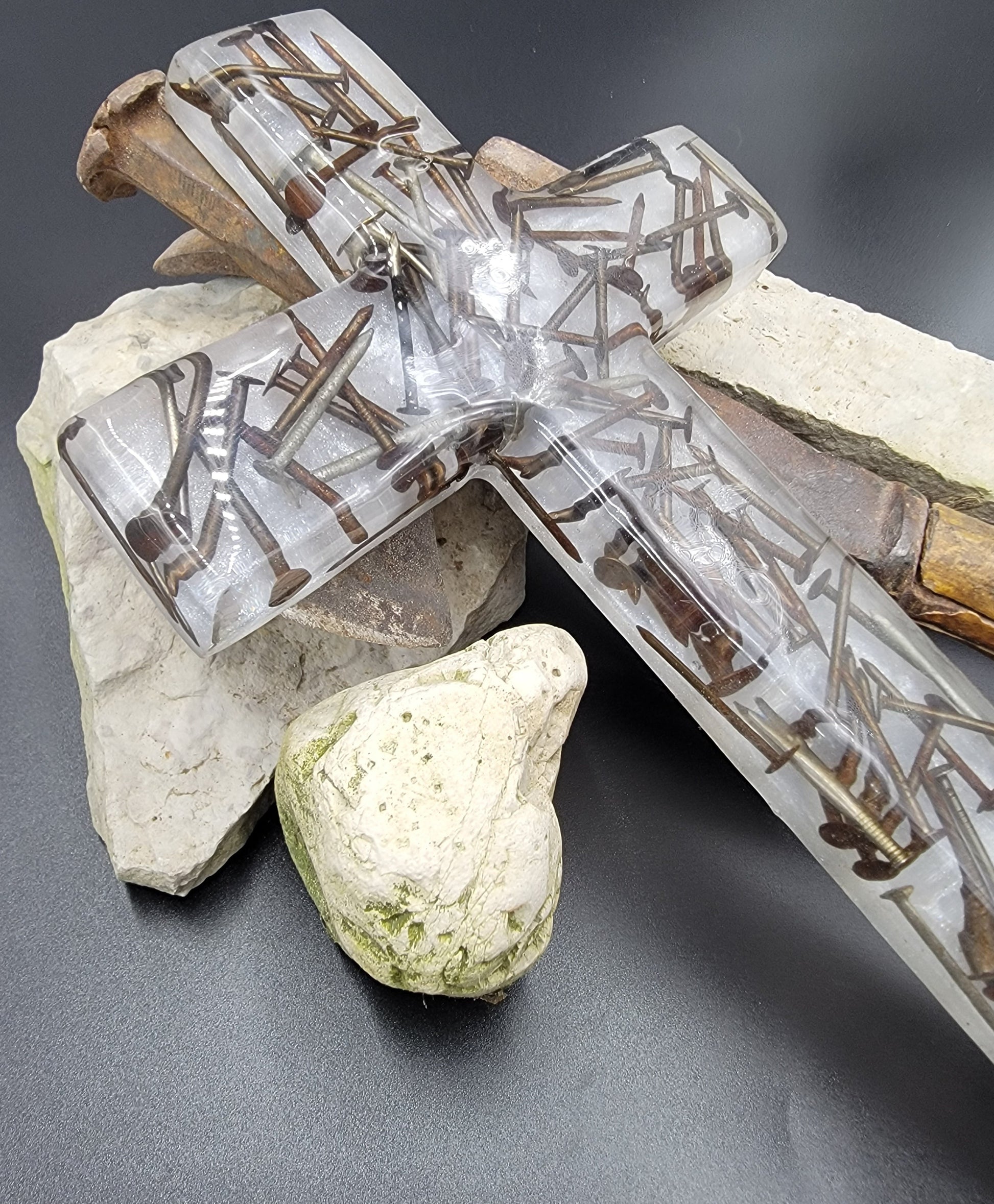 Nail of Devotion Cross: Solid Epoxy Resin with Embedded Nails Give the Gift of God's Love